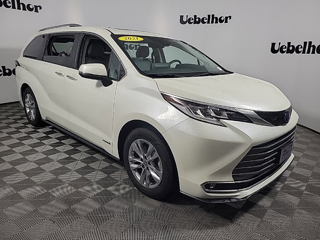 Experience premium comfort and exceptional versatility with this 2021 Toyota Sienna Limited (VIN 5TDZSKFC6MS003423), now available at Uebelhor & Sons, your trusted Indiana dealership known as Where Customers Send Their Friends. This upscale Limited model delivers a smooth, efficient 2.5L hybrid powertrain, advanced automatic transmission, and confident handling perfect for families, commuters, and long-distance travelers alike. Inside, you'll appreciate the luxury of heated leather seating, a hands-free power liftgate, premium JBL audio, navigation, and a large touchscreen with seamless smartphone integration. Safety comes standard with Toyota Safety Sense, offering adaptive cruise control, lane assist, blind-spot monitoring, and more for total peace of mind. With competitive mileage and strong value, this Sienna Limited stands out among cars for sale in Jasper IN, combining fuel efficiency, comfort, and reliability in one beautiful package.Schedule your test drive today at Uebelhor & Sons in Jasper where customers send their friends!***3RD ROW SEATING***, ***BACK UP CAMERA***, ***BLUETOOTH***, ***CLEAN AUTOCHECK***, ***HEATED AND VENTILATED SEATS***, ***LOCAL TRADE***, ***NAVIGATION***, ***NON SMOKER***, ***SUNROOF***. White 2021 Toyota Sienna Limited 7 Passenger AWD 35/36 City/Highway MPG